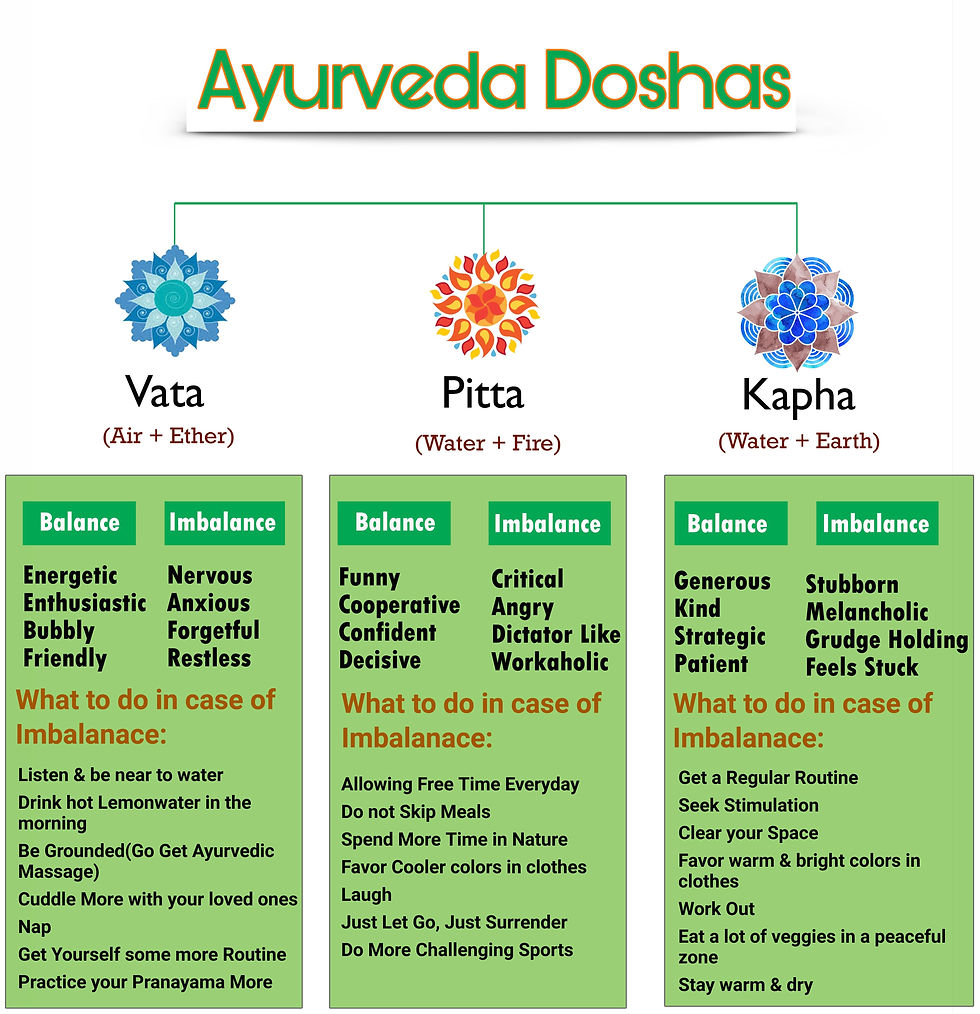 Dosha | Elements | Qualities | Governs | Balanced State | Imbalanced State |